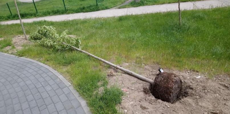 - Ciekawe rzeczy na Oksywiu. Posadzone kilka dni temu drzewka już się przewracają, czy zostały źle osadzone w ziemi, czy zawinił brak zabezpieczenia w postaci kijków po bokach, nie wiem, ale jestem oburzona, że taką fuszerkę ktoś wykonuje... - komentuje pani Kinga.