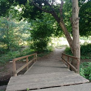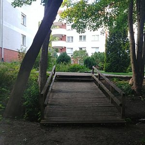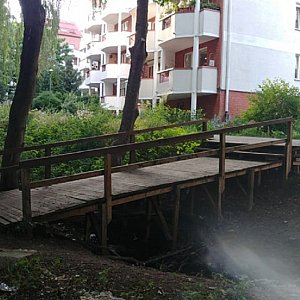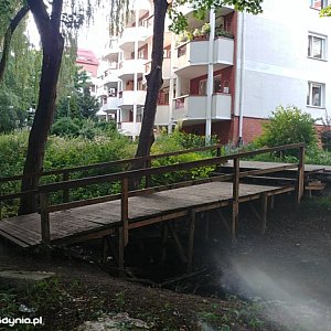 Mieszkańcy osiedla Zamek wysiadając z autobusu (S, W, 159) lub trajtka (28) nie wybierają drogi na około, tylko schodzą na dół w stronę potoku, na którym od kilku lat stoi drewniany most wybudowany przez mieszkańców z inicjatywy jednego z nich.