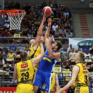 Obie ekipy na początku spotkania nie pokazywały zbyt dobrej skuteczności, co skutkowało niskim i wyrównanym wynikiem. Dopiero później, po trójce Pawła Leończyka, gospodarze uciekli na sześć punktów. W końcówce tej części spotkania serią punktową popisali się jednak gdynianie, a głównie dzięki akcjom Krzysztofa Szubargi po 10 minutach był remis - po 18. W drugiej kwarcie Asseco Arka potrafiła wychodzić na prowadzenie po kolejnych rzutach Bartłomieja Wołoszyna. Małe straty błyskawicznie odrobił jednak Karol Gruszecki, a Trefl zaczął budować przewagę. Aktywny był Paweł Leończyk, natomiast po trójce Łukasza Kolendy różnica wzrosła do dziewięciu punktów. W końcówce straty zmniejszyli Filip Dylewicz oraz Mikołaj Witliński, ale pierwsza połowa była lepsza dla ekipy Marcina Stefańskiego - 41:37.
