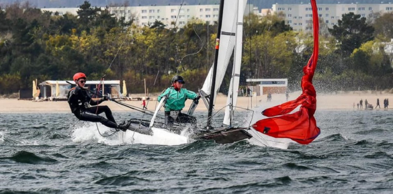 "Zakończyły się pierwsze regaty w tym sezonie! Nasze klubowe wody Klub Żeglarski UKS Navigo przyniosły nam szczęście, bo po dwóch dniach wyścigów zajmujemy 2 miejsce, a w kategorii juniorów, stanęliśmy na najwyższym stopniu podium! Pierwszego dnia bardzo długo czekaliśmy na odpowiedni wiatr, jednak finalnie udało się rozegrać jedynie jeden klasyfikowany wyścig. Dzisiaj za to, Posejdon zaplanował dla nas lepsze waruneczki z mocnym, choć porywistym wiatrem. Pomimo dwóch wywrotek, z czego obie spowodowały spore problemy techniczne, utrzymaliśmy pozycje wywalczoną poprzedniego dnia. Chyba trudniej o większy przekrój pogodowy, gdyż doświadczyliśmy podczas weekendu wszystko - od przecinającego gradu, przez deszcz i chmury, do słoneczka i ciepłego wiaterku.Nie ukrywamy, jeszcze sami widzimy trochę elementów do poprawy, ale dostaliśmy sporo motywacji do dalszej pracy!" - podsumowali Julka i Stachu, czyli Julia Wróblewska i Stanisław Wierczyński z UKS Navigo, uczniowie III LO w Gdyni.