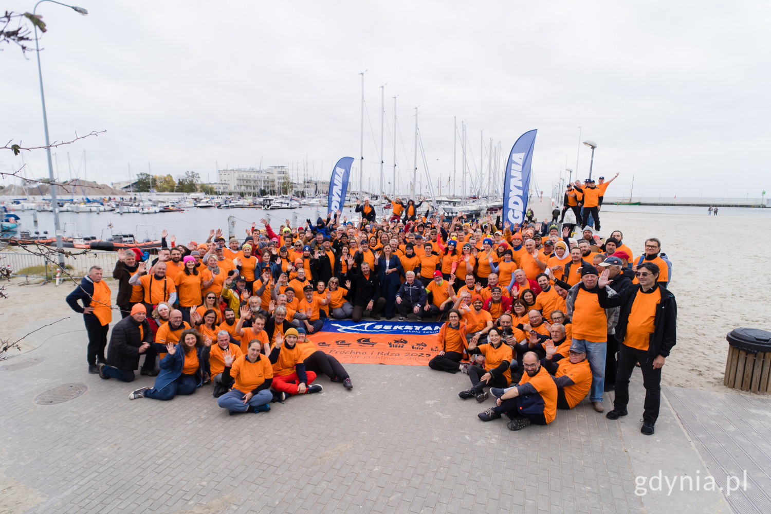 Pamiątkowe zdjęcie uczestników zlotu z prezydent Gdyni Aleksandrą Kosiorek (fot. Paweł Budziński)