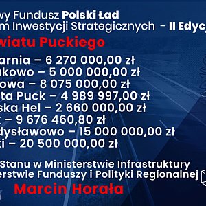 Powiat Pucki – 16 000 000,00 zł oraz 4 500 000,00 zł