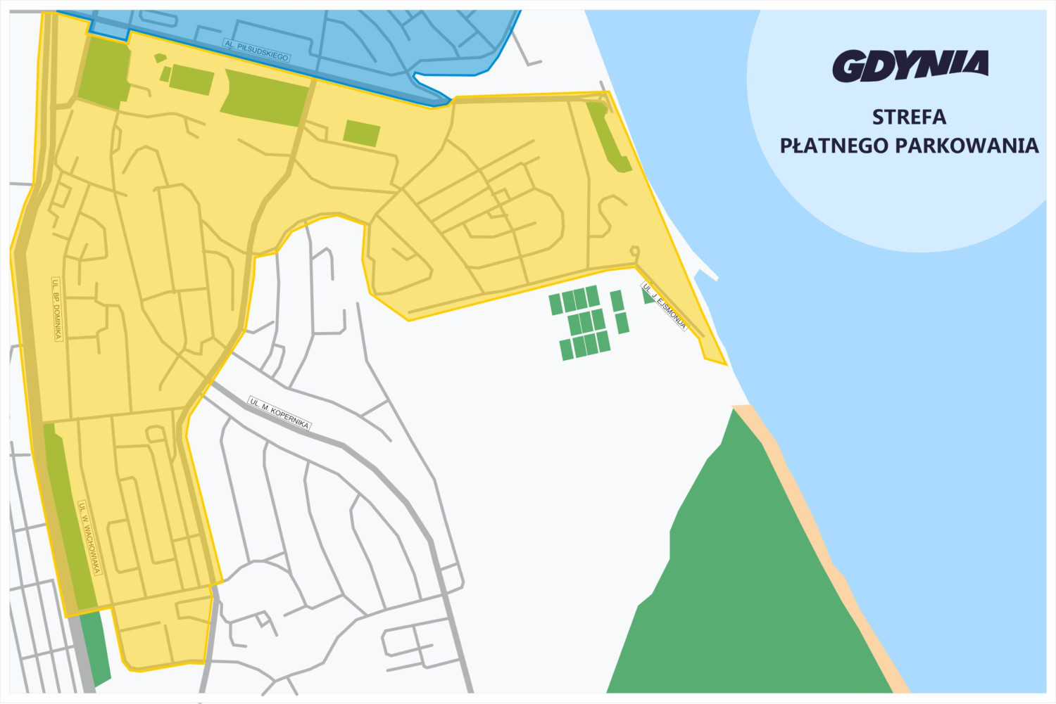 Od marca 2022 roku w Gdyni obowiązują dwie strefy płatnego parkowania – Strefa Płatnego Parkowania oraz Śródmiejska Strefa Płatnego Parkowania. Szczegółowy spis ulic wchodzących w poszczególne strefy znajdziemy tutaj.
