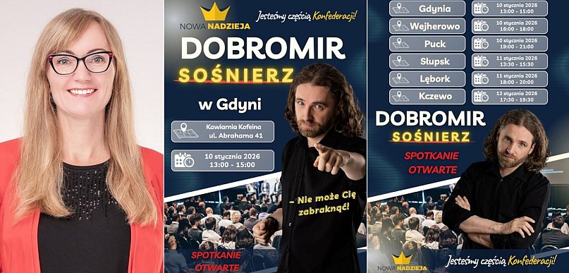 - Już w najbliższą sobotę w Gdyni spotykamy się z Dobromirem Sośnierzem. Bez cenzury, o wolności, życiu i polityce. Gorąco zapraszam na spotkanie otwarte - mówi Iwona Kurecka z Nowej Nadziei.