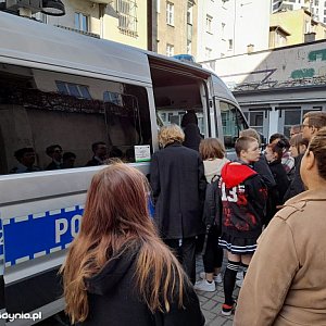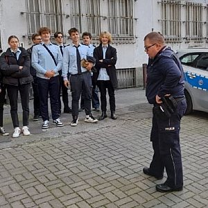 Podczas zwiedzania jednostki dzielnicowy z Komisariatu Policji w Gdyni - Oksywiu opowiedział gościom o pracy policjantów oraz przekazał najważniejsze informacje dotyczące wymagań, etapów postępowania pomocnych w przygotowaniu do rekrutacji. Podczas zwiedzania jednostki kilka osób zgłosiło chęć, aby w przyszłości wstąpić do służby w Policji.