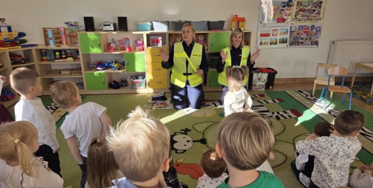 Podczas zajęć przedszkolaki dowiedziały się jak ważne jest noszenie odblasków, zwłaszcza w okresie jesienno-zimowym, gdy szybko zapada zmrok. Policjantki w przystępny i atrakcyjny sposób tłumaczyły najmłodszym, jak prawidłowo przechodzić przez jezdnię, gdzie należy się zatrzymać oraz dlaczego należy zawsze być widocznym dla kierowców.