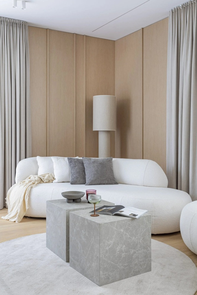 Największym błędem jest aranżowanie wnętrza bez jasno określonego planu. Podczas projektowania najlepiej jest wybrać styl przewodni, który od początku konsekwentnie będzie porządkował wygląd mebli, dodatków i innych detali w całym domu. Projektanci z Moovin Interiors zalecają aranżację w jednym stylu - minimalizm, japandi, styl loftowy czy rustykalny. Jeśli znajdziemy odpowiedni dla siebie styl, musimy realizować go w kolorystyce, materiałach, fakturach i charakterystycznych dla stylu formach. Przemyślane i spójne wnętrza są przyjemne w odbiorze oraz sprzyjają wyciszeniu.