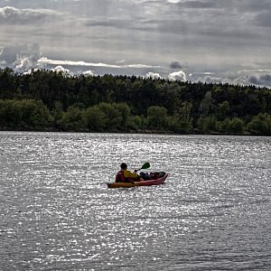 Szymon wstał dość późno i w dalszy rejs wyruszył ok. godz. 10. Nie było łatwo. Wiatr w oczy, wichura i wiry na Wiśle. Najpierw kilka kilometrów za Toruniem wpadł do wody, wiatr zerwał flagę, której nie udało się odzyskać, bo Szymon musiał ratować kajak, by ten nie odwrócił się do góry nogami. Potem na wysokości Górska musiał zmierzyć się z ulewą.