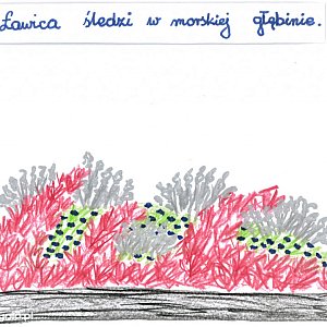 Aleksandrze Portee z kl. V B Szkoły Podstawowej nr 16 za wykonanie pracy plastycznej pt.: „Ławica śledzi w morskiej głębinie”.