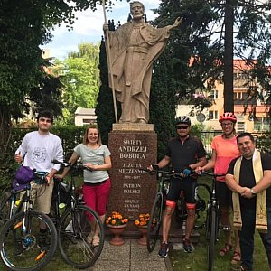 „Trójmiejski szlak rowerowy św. Andrzeja Boboli, zostałem na niego zaproszony przez naszą cudowną Panią Anię Hochleitner z IX LO! Zaczęliśmy ranem w Gdańsku Wrzeszcz pod kościołem pw. św. Andrzeja Boboli, gdzie usłyszeliśmy o historii naszego Patrona Polski, którą przybliżył nam ojciec Robert. Następnie zwiedziliśmy kilka ciekawych punktów, które były związane z naszym patronem, ale i nie tylko! Zatrzymaliśmy się w Orłowie gdzie się uzupełniliśmy małym deserem i ruszyliśmy dalej! Razem z Natalią, Panią Anią, Panem Adamem i Panią Magdą wspólnie rywalizowaliśmy i ścigaliśmy się czasami.Bardzo piękne widoki, piękna pogoda, atmosfera wspaniała na takie szlaki to ja mogę jeździć!”