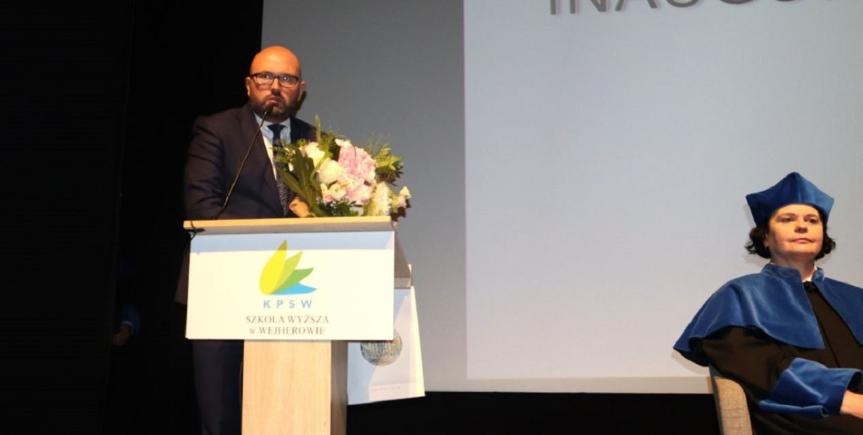 Arkadiusz Kraszkiewicz zastępca prezydenta Wejherowa podkreślił znaczenie uczelni dla miasta, a studentom rozpoczynającym swoją akademicką przygodę życzył pasji i radości z nauki, otwartości na nowe doświadczenia, wytrwałości w dążeniu do celów, a także satysfakcji z rozwoju osobistego.