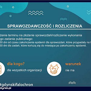 Zmiany w działaniach projektowych, harmonogramach oraz kosztorysach będą po zakończeniu realizacji projektów dodatkowym wyzwaniem dla organizacji realizujących zadania publiczne. By dać im możliwość rzetelnego rozliczenia, prezydent Gdyni – korzystając z nadzwyczajnych przepisów związanych z epidemią - wydłużył okres na złożenie sprawozdań z realizacji zadań i ich rozliczenie.