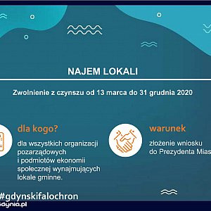 Gdyńskie organizacje użytkują lokale, które stanowią własność gminy. Część z nich jest użyczonych – organizacje nie ponoszą kosztów czynszu, inne gmina wynajmuje. Wszystkie organizacje, które płacą czynsz mają możliwość wystąpienia z wnioskiem o zwolnienie z płatności w okresie od ogłoszenia stanu epidemii do końca 2020 roku.