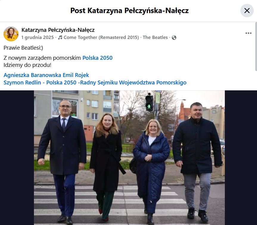 Katarzyna Pełczyńska-Nałęcz napisała: "Prawie Beatlesi, Z nowym zarządem pomorskim Polska 2050 Idziemy do przodu!"