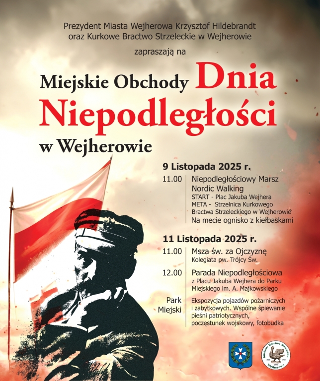 Na miejskie obchody Narodowego Święta Niepodległości 11 Listopada zaprasza Prezydent Wejherowa Krzysztof Hildebrandt oraz Kurkowe Bractwo Strzeleckie.