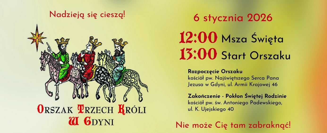 Zapraszamy do udziału w Gdyńskim Orszaku Trzech Króli 6 stycznia – zachęca Jarosław Szydłak, prezes zarządu Stowarzyszenia Katolickie Centrum Kultury w Gdyni. – Niech hasło tegorocznego Orszaku Trzech Króli: „Nadzieją się cieszą!” stanie się bliskie wszystkim uczestnikom wydarzenia.