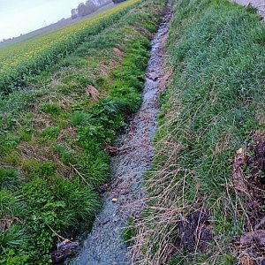 Na razie cuchnący ciek płynie przez Grabowiec przy szosie 201. Przejeżdżający zaczynają coraz bardziej kojarzyć gminą Czarne ze smrodem!