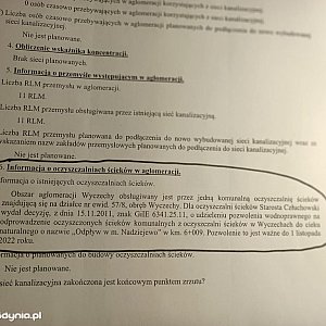 WIOŚ wcześniej wyznaczył termin do końca maja br., do którego właściciel oczyszczalni miał podjąć działania, w wyniku których miała ulec poprawie jakość ścieków. Brak takich działań może wpłynąć na wyłączenie z użytkowania oczyszczalni w Wyczechach.