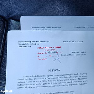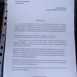 „Z wielką satysfakcją chcę powiadomić mieszkańców Nadziejewa, że w dniu 29.07.22r w imieniu Komitetu Społecznego Mieszkańców Nadziejewa złożyłem ponownie wniosek o wybudowanie - przebudowę dwóch dróg w Nadziejewie. Przypomnę że już raz, za pośrednictwem Urzędu Miasta i Gminy Czarne, składaliśmy wniosek o powyższe drogi, lecz nie uzyskały akceptacji przed komisją w Pomorskim Urzędzie Wojewódzkim.” - zawiadamia mieszkańców Jerzy Terechów, prezes Stowarzyszenia Czarne. Tu się dzieje!