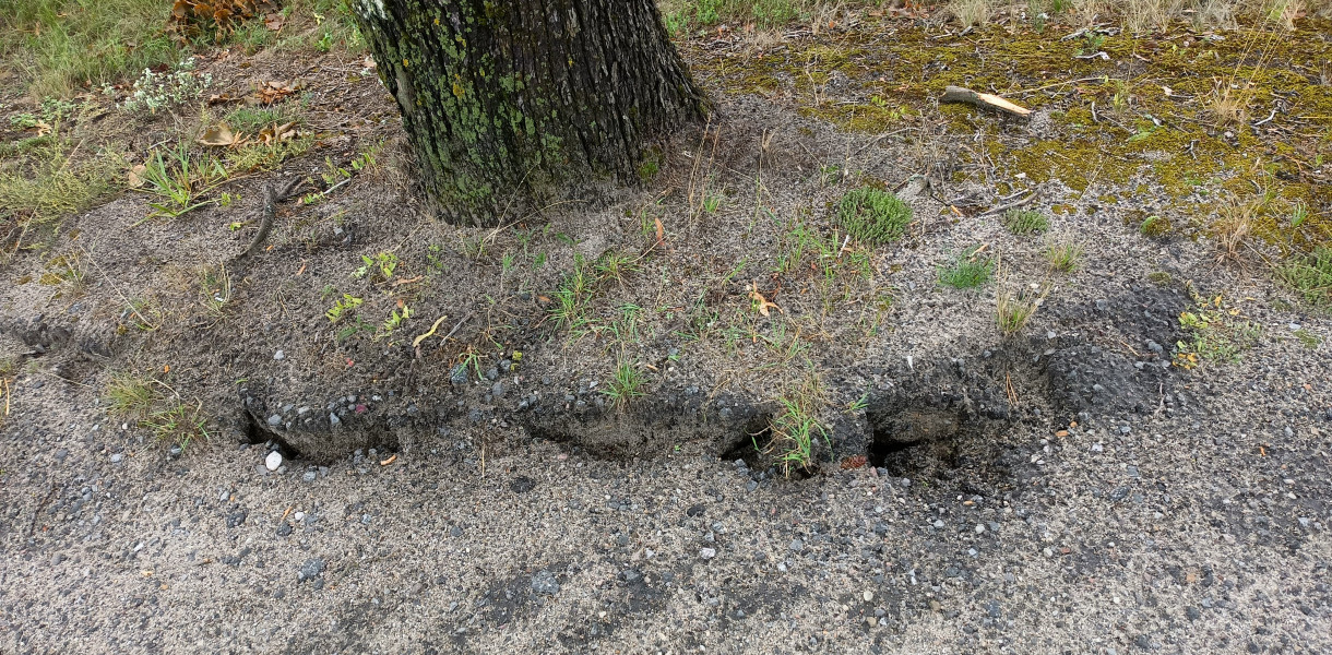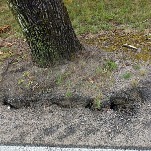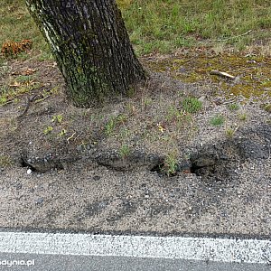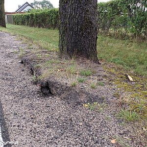 Na zdjęciu przesłanym do redakcji widać bardzo wyraźnie, jak naruszony jest system korzeniowy przydrożnego drzewa.