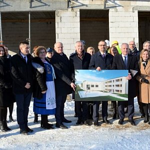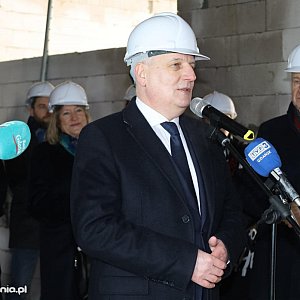 W miejscu starej szkoły przy ul. Lotniczej w Baninie stanie nowoczesny budynek. Realizacja inwestycji jest możliwa dzięki dofinansowaniu - 13 983 585,43 zł - z Rządowego Funduszu Polski Ład: Programu Inwestycji Strategicznych 2022. Z udziałem wiceministra funduszy i polityki regionalnej Marcina Horały i wojewody pomorskiego Dariusza Drelicha wmurowano dziś kamień węgielny.