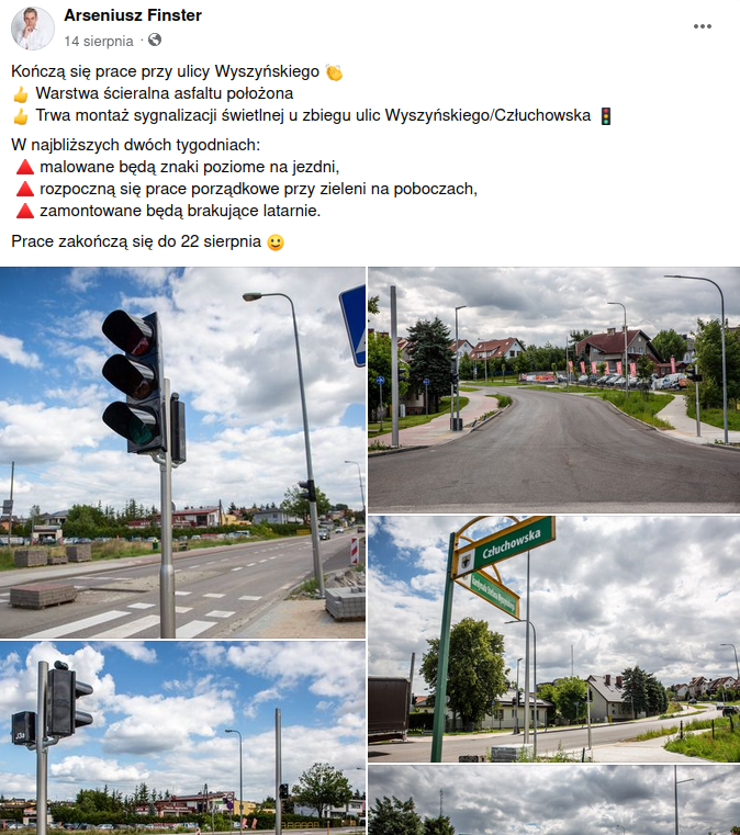 „Więc jak to najczęściej bywa w Chojnicach zrobiono to źle i zamiast rozwiązać problem korki narastają. Najpewniejszym rozwiązaniem było rondo na niezabudowanym terenie przy Wyszyńskiego. Pan Finster nie omieszkał pochwalić się tą wspaniałą inwestycją na swoim profilu facebookowym.” - dodaje Gruchała.