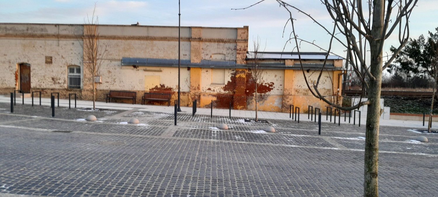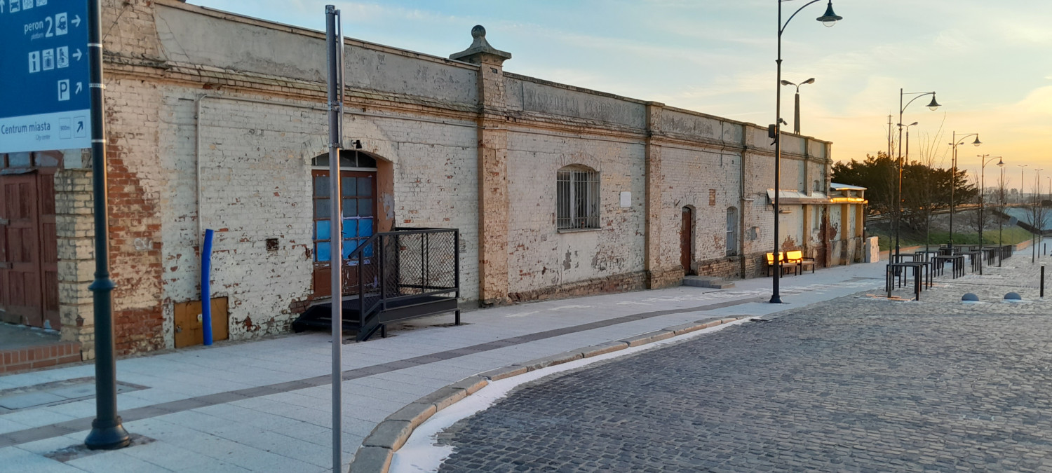 Na zdjęciu niewyremontowane ściany przy nowowyremontowanym Dworcu PKP w Chojnicach.