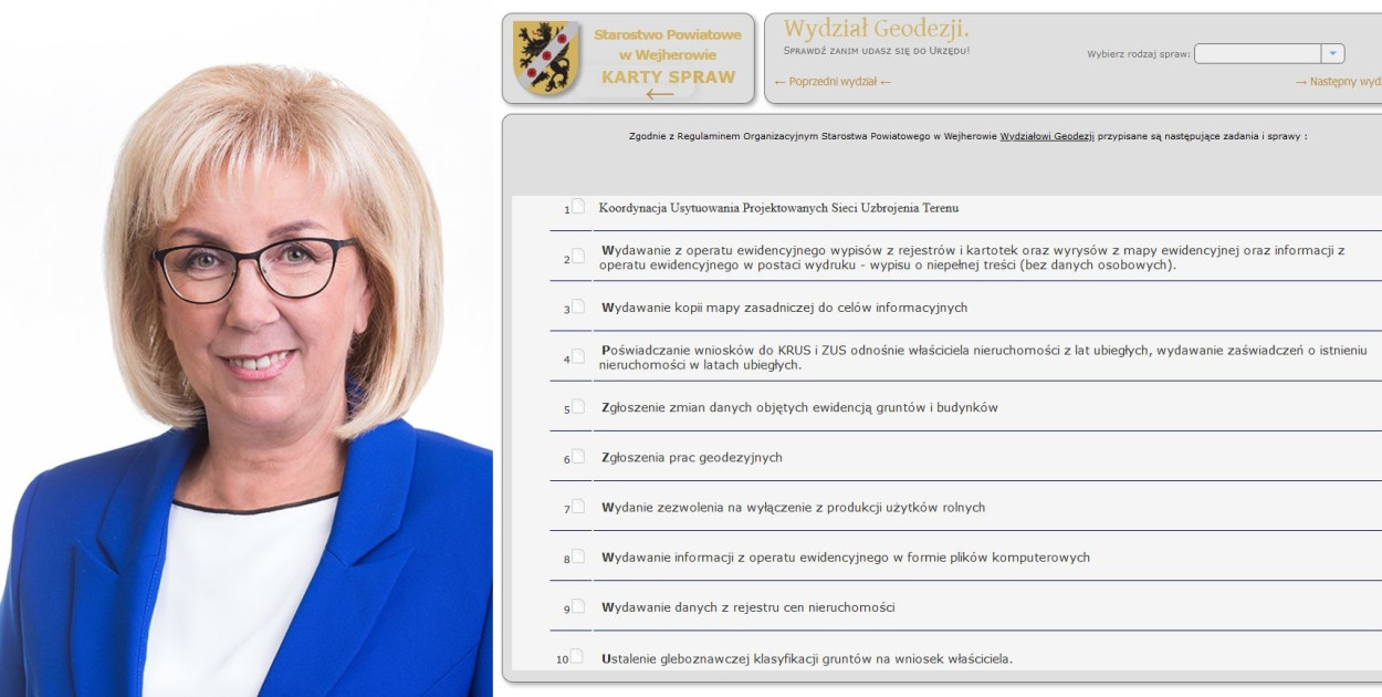 - Dzięki modernizacji Starostwa mieszkańcy są obsługiwani sprawniej w lepszych warunkach. Dotyczy to m.in. największych wydziałów takich jak: komunikacja, architektura, geodezja, gdzie mieszkańcy rejestrują samochody, uzyskują pozwolenia na budowę oraz pobierają mapki. Co ciekawe, w Starostwie działa też biuro Powiatowego Rzecznika Konsumentów, a nawet Biuro Rzeczy Znalezionych. Natomiast za usprawnienia obsługi mieszkańców w Wydziale Geodezji poprzez elektronizację wniosków w ewidencji gruntów zostaliśmy w kategorii powiatów wyróżnieni w 2023 roku w Konkursie Innowacyjny Samorząd - mówi Gabriela Lisius, Starosta Wejherowski.