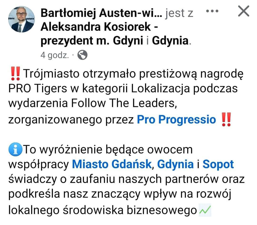 Nie wiadomo, co jest gorze - czy kupno "biletu i inwestowanie w nagrody", czy poddawanie się lobbingowi i traktowanie urzędu jako firmy, bowiem nigdzie ani Austen, ani służby prasowe gdyńskiego ratusza nie wytłumaczyły mieszkańcom na jakich zasadach i dlaczego zastępca Aleksandry Kosiorek pojechał sobie na jakąś kolejną galę z nagrodami. To jest nietransparentne aż boli!