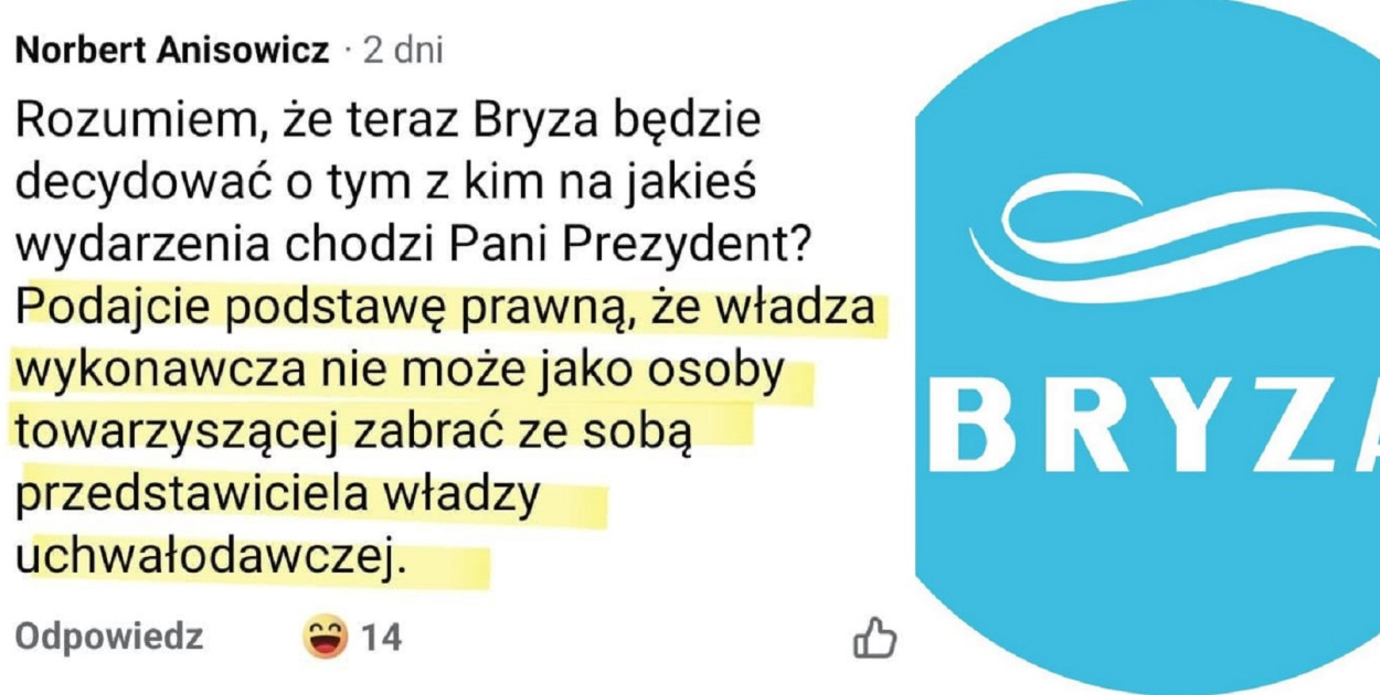 Pod naszym niedawnym postem o funkcji Przewodniczącego Rady Miasta wypowiedział się radny Anisowicz z KORMIR, prosząc o podanie podstawy prawnej, iż "władza wykonawcza nie może jako osoby towarzyszącej zabrać ze sobą przedstawiciela władzy uchwałodawczej."