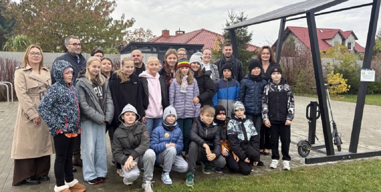 Dzięki wsparciu w wysokości 23 975 zł powstała strefa spotkań i wypoczynku, wyposażona m.in. w nowoczesną wiatę solarną z możliwością ładowania hulajnóg elektrycznych oraz ławki piknikowe ze stołami. Lokalizacja przy boisku sprzyja integracji i aktywności na świeżym powietrzu.