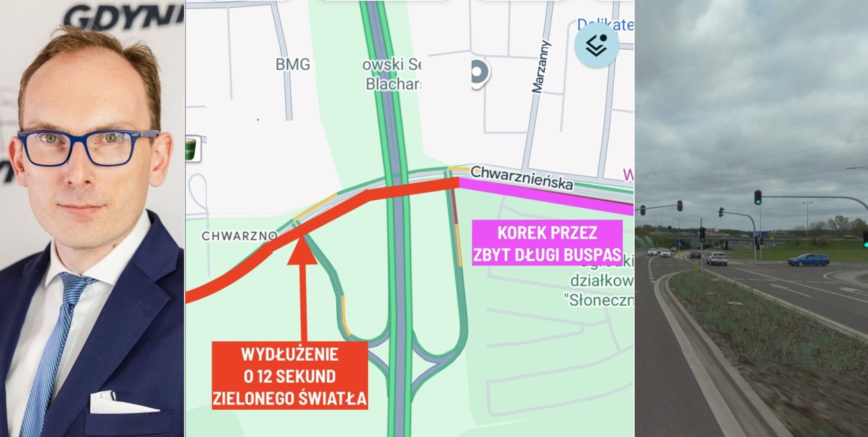"Poranne korki wyjazdowe z dzielnicy Chwarzno-Wiczlino przybierają na sile, a poranny szczyt może być jeszcze trudniejszy przy zwiększeniu utrudnień związanych z budową Obwodnicy Witomina." - zauważa Jakub Ubych, radny Gdyni.