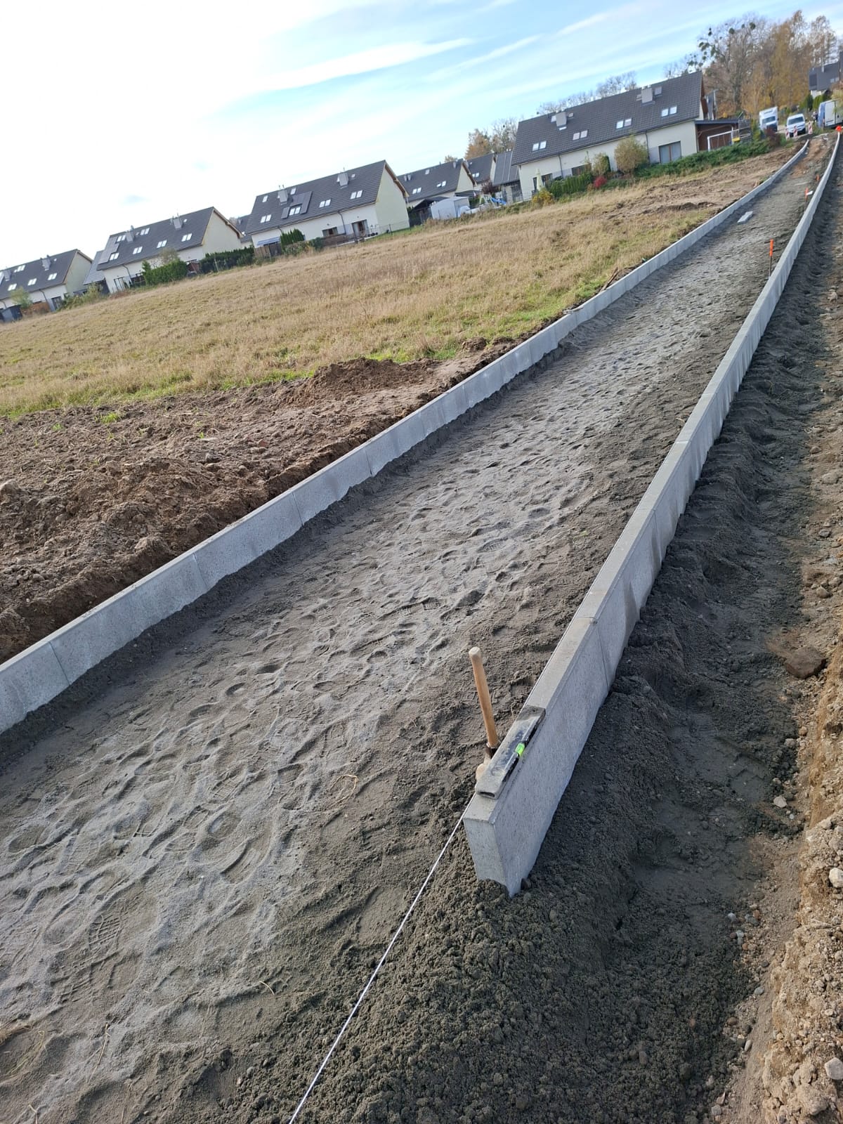 Banino – ul. Słoneczna trwa układanie chodnika