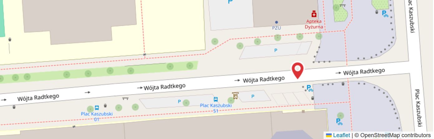 Poza tym w zatoce postojowej obok strefy K+R oraz w zatoce po przeciwnej stronie ul. Wójta Radtkego wyznaczone są miejsca postojowe bez ograniczeń czasowych, w tym również dla osób z niepełnosprawnością.
