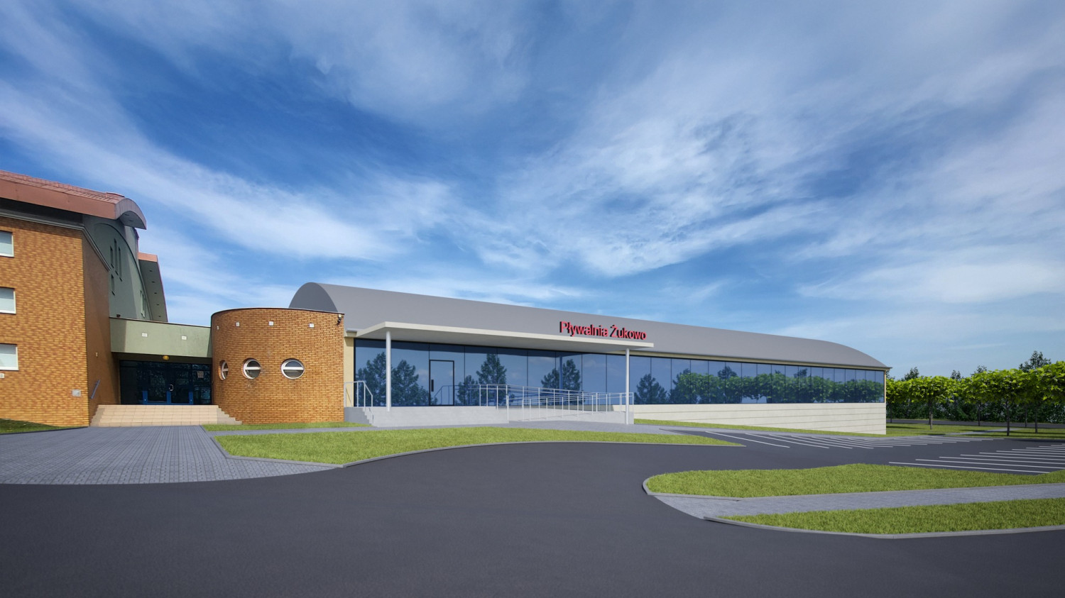 Zakończyły się prace nad projektem koncepcyjnym krytej pływalni w Żukowie. Obiekt mógłby powstać przy Szkole Podstawowej nr 2 – został zaprojektowany w sposób umożliwiający połączenie ze szkołą (zbudowaną tam już infrastrukturą), a jednocześnie tak, by mógł funkcjonować niezależnie.