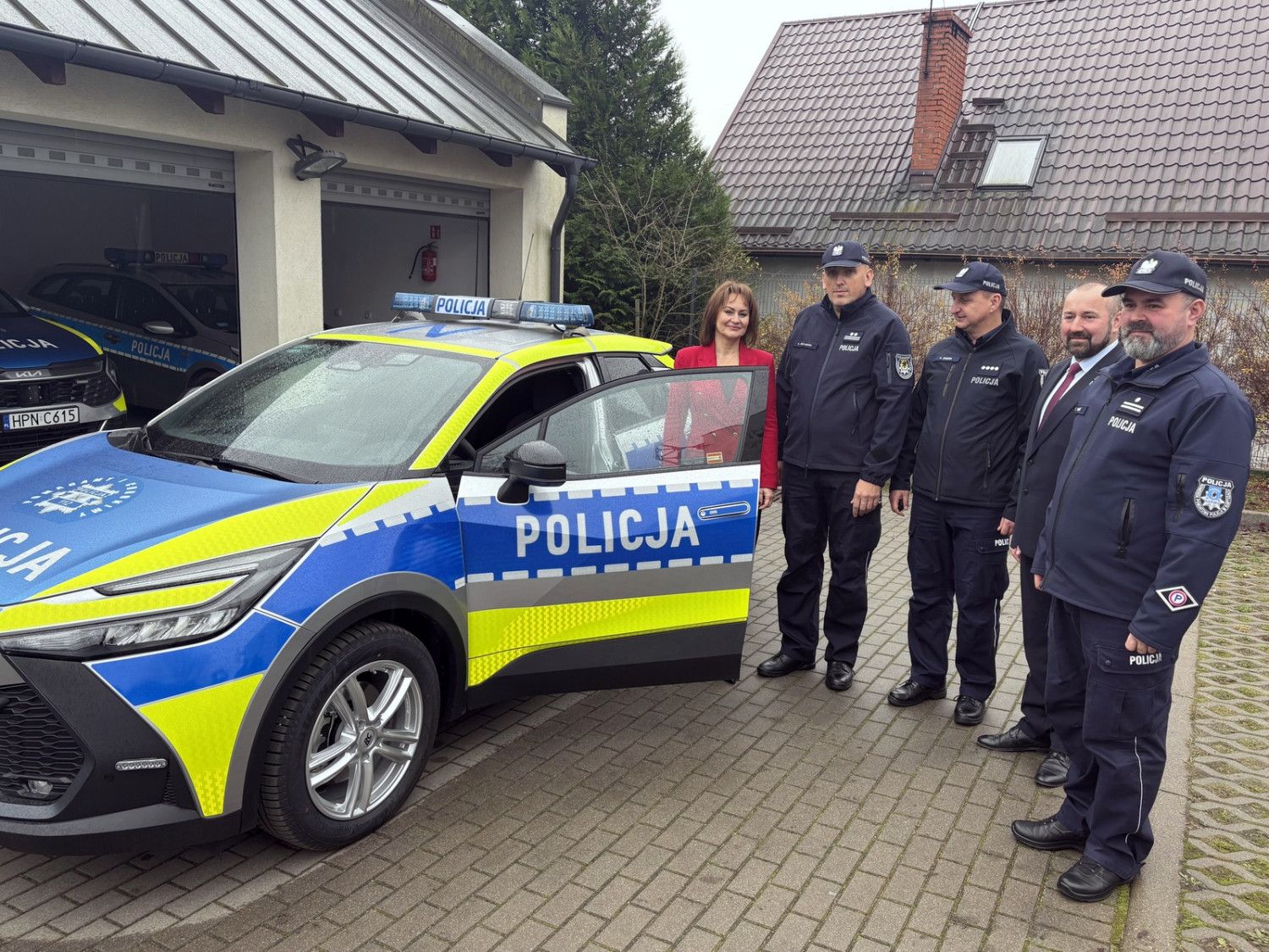Następnie Burmistrz Gminy Żukowo Mariola Zmudzińska przekazała kluczyki do nowego radiowozu marki Toyota C-HR MY’25 komendantowi podinsp. Zenonowi Halmanowi.