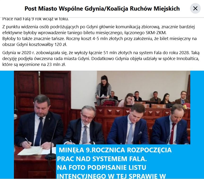 Jest czas rocznych podsumowań, przez kilka lat mocno krytykowałem udział Gdyni w projekcie biletowym Fala, pisząc o potrzebie wprowadzenia łączonego biletu ZKM-SKM na terenie Gdyni, a głosowałem za budżetem na 2026 r. gdzie Gdynia na Falę miasto wykłada ponad 12 mln zł, więc należy się wszystkim rzetelny opis miejsca, w którym jesteśmy. Bo na 12 mln się nie kończy.