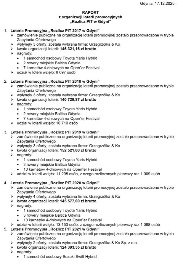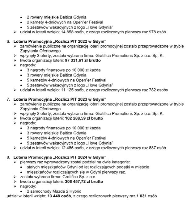 "Niedawno zapytałem o analizę rezultatów, jakie loterie podatkowe przynoszą dla wpływów do budżetu miasta. W odpowiedzi otrzymałem dane dotyczące poprzednich edycji.