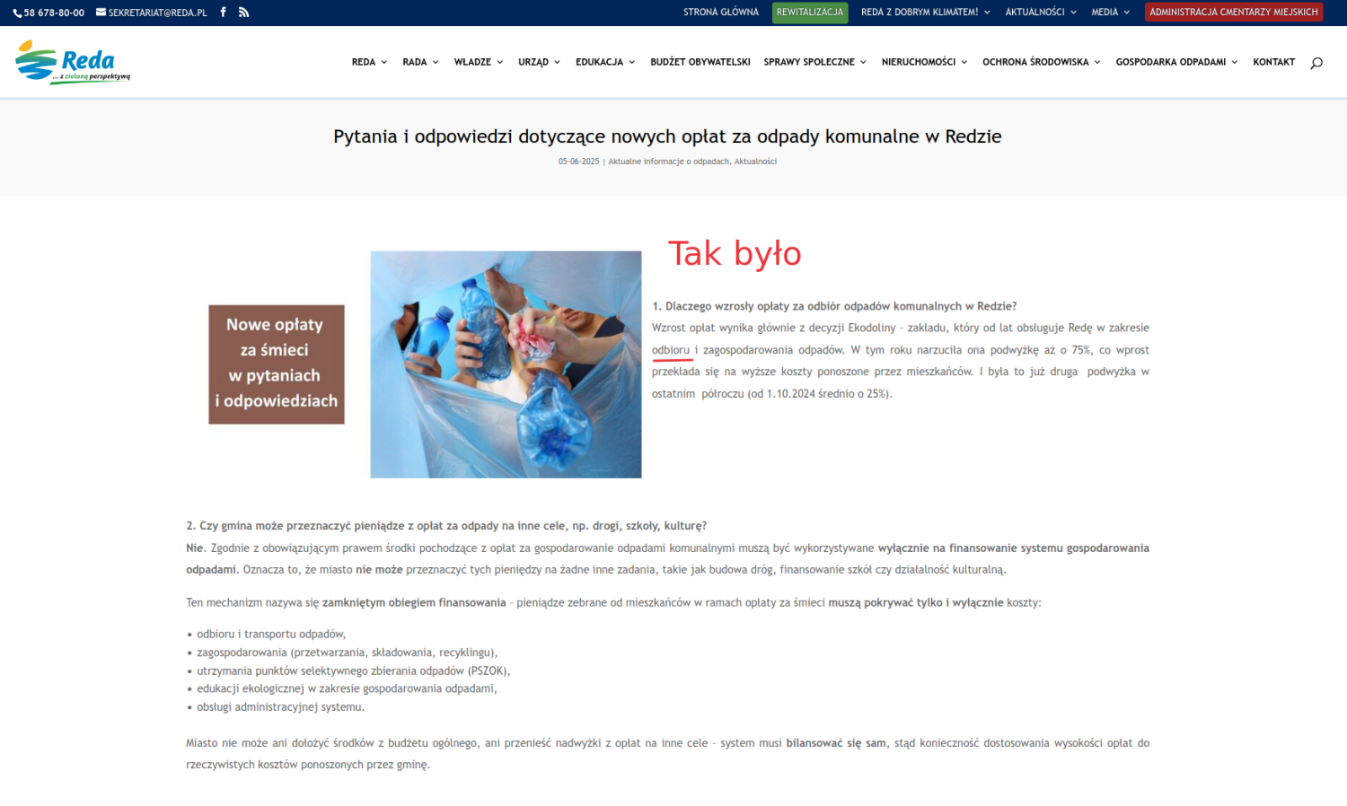 "Komisja Skarg, Wniosków i Petycji Rady Miejskiej w mieście Reda jednogłośnie rekomenduje uznanie mojej skargi dotyczącej kłamstw opublikowanych na stronie Urzędu Miasta w temacie przyczyn podwyżki opłat za odpady dla Mieszkańców za zasadną." - poinformował Marcin Ruszczyk.