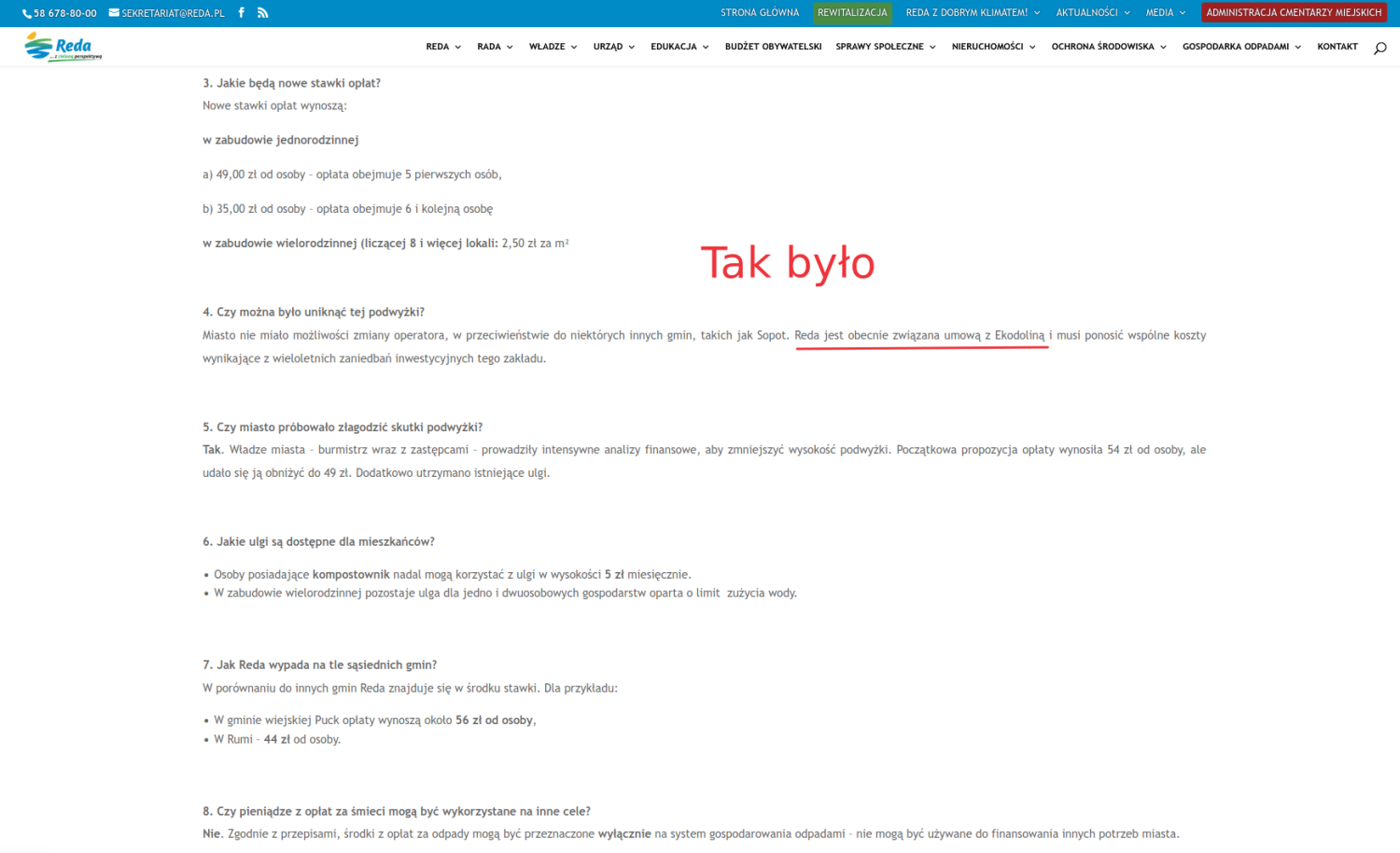 "Nie ma mojej zgody na okłamywanie Mieszkańców miasta Reda. Złożyłem skargę na Burmistrza dotyczącą opublikowania na oficjalnej stronie urzędu miasta nieprawdziwych informacji dotyczących podwyżki opłat za odpady." - podkreślał Marcin Ruszczyk.