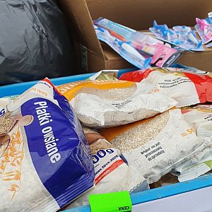 Zebrane artykuły spożywcze, środki czystości na bieżąco przekazywane są potrzebującym.
